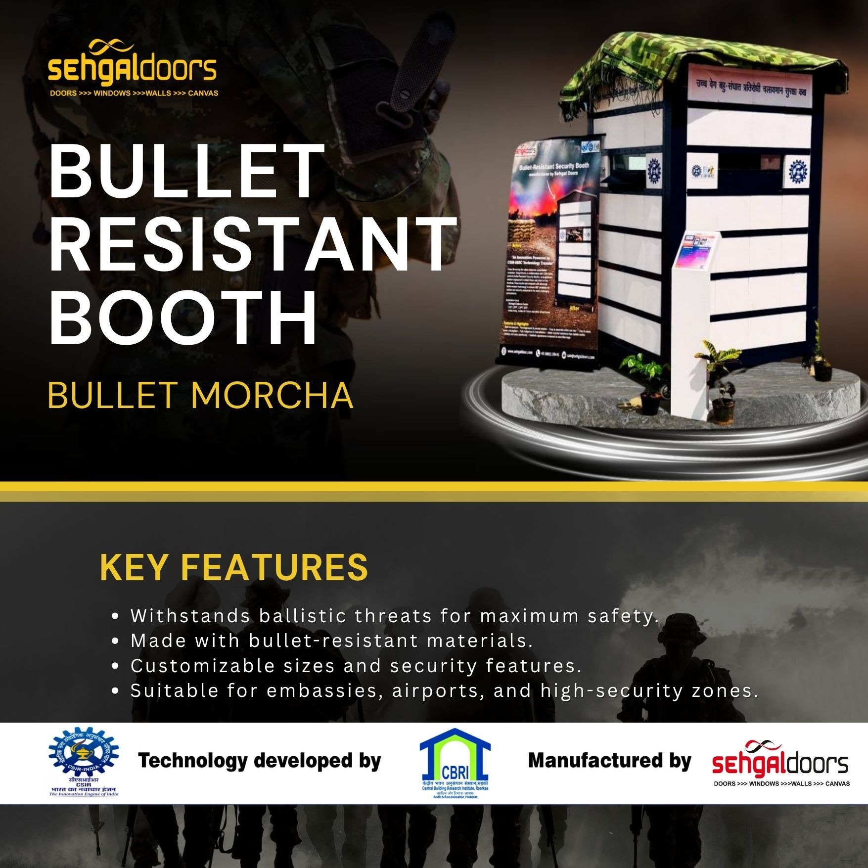 - Reinforced Materials: Manufactured using bullet-resistant panels, glass, and structural components