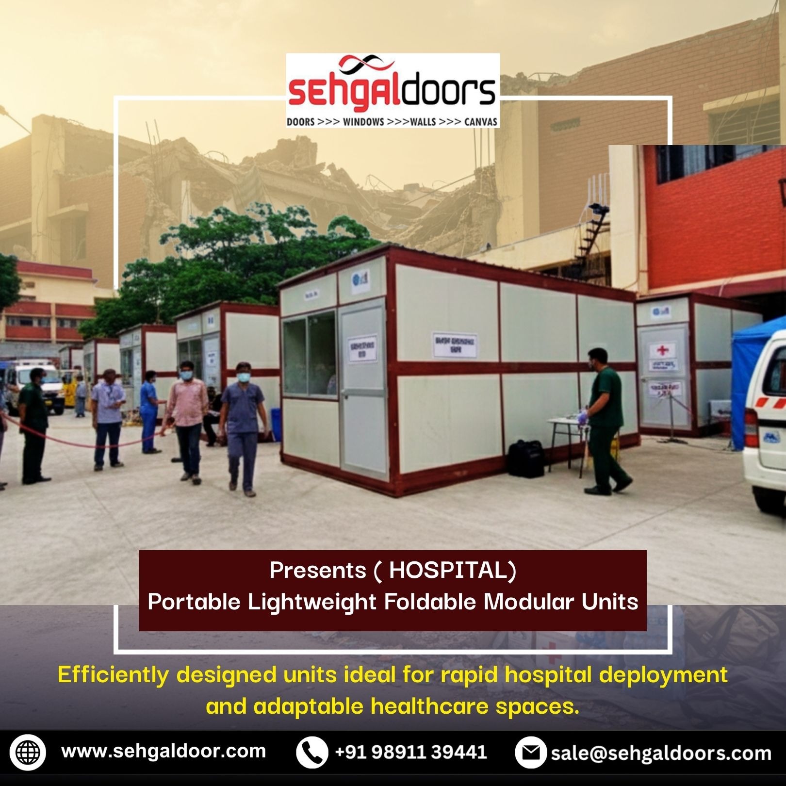 Portable, foldable modular hospital units by Sehgal Doors create instant OPD, isolation and emergency spaces, anywhere healthcare needs to scale fast.